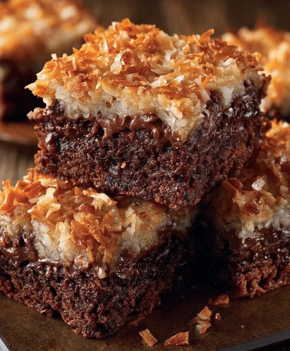 German chocolate brownies are a rich and indulgent twist on classic brownies. With a fudgy chocolate base and a decadent coconut-pecan topping, they combine two beloved desserts into one irresistible treat.