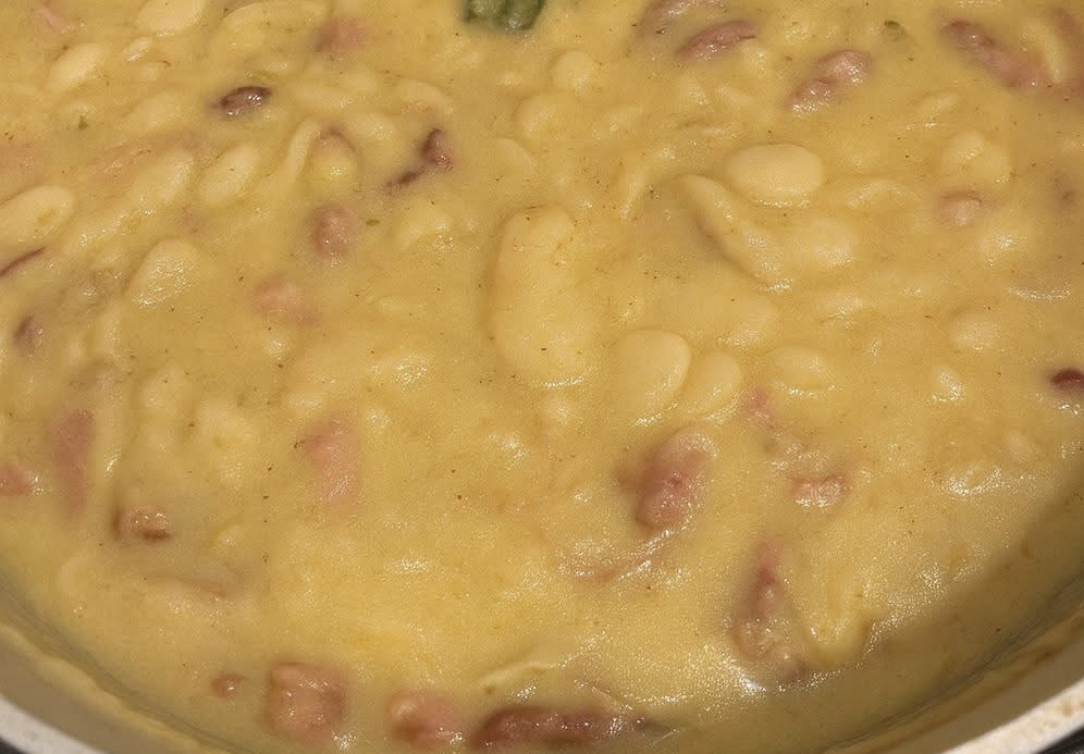 Nestle the smoked meat into the mixture and bring everything to a gentle boil. Lower the heat and let it simmer until the beans are tender and the broth has thickened into a creamy sauce. Stir occasionally, and adjust seasoning with salt and pepper toward the end.