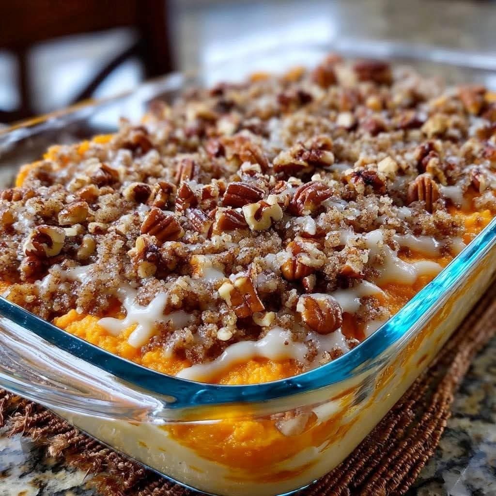 This classic Southern Sweet Potato Casserole is the ultimate comfort dish — creamy, buttery sweet potatoes topped with a crunchy brown sugar and pecan crumble. Perfect for holiday feasts, Sunday dinners, or any time you crave a warm, cozy side with a touch of sweetness.