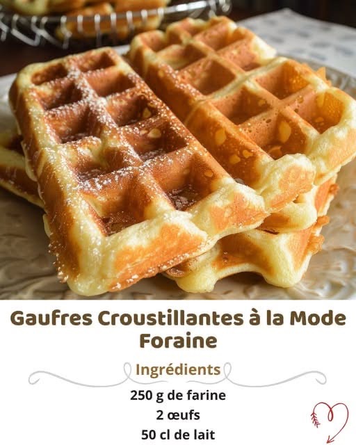 Ces gaufres croustillantes à la mode foraine sont faciles à réaliser et parfaites pour le goûter ou le petit-déjeuner. Une recette simple qui plaît aux petits comme aux grands 😍🧇