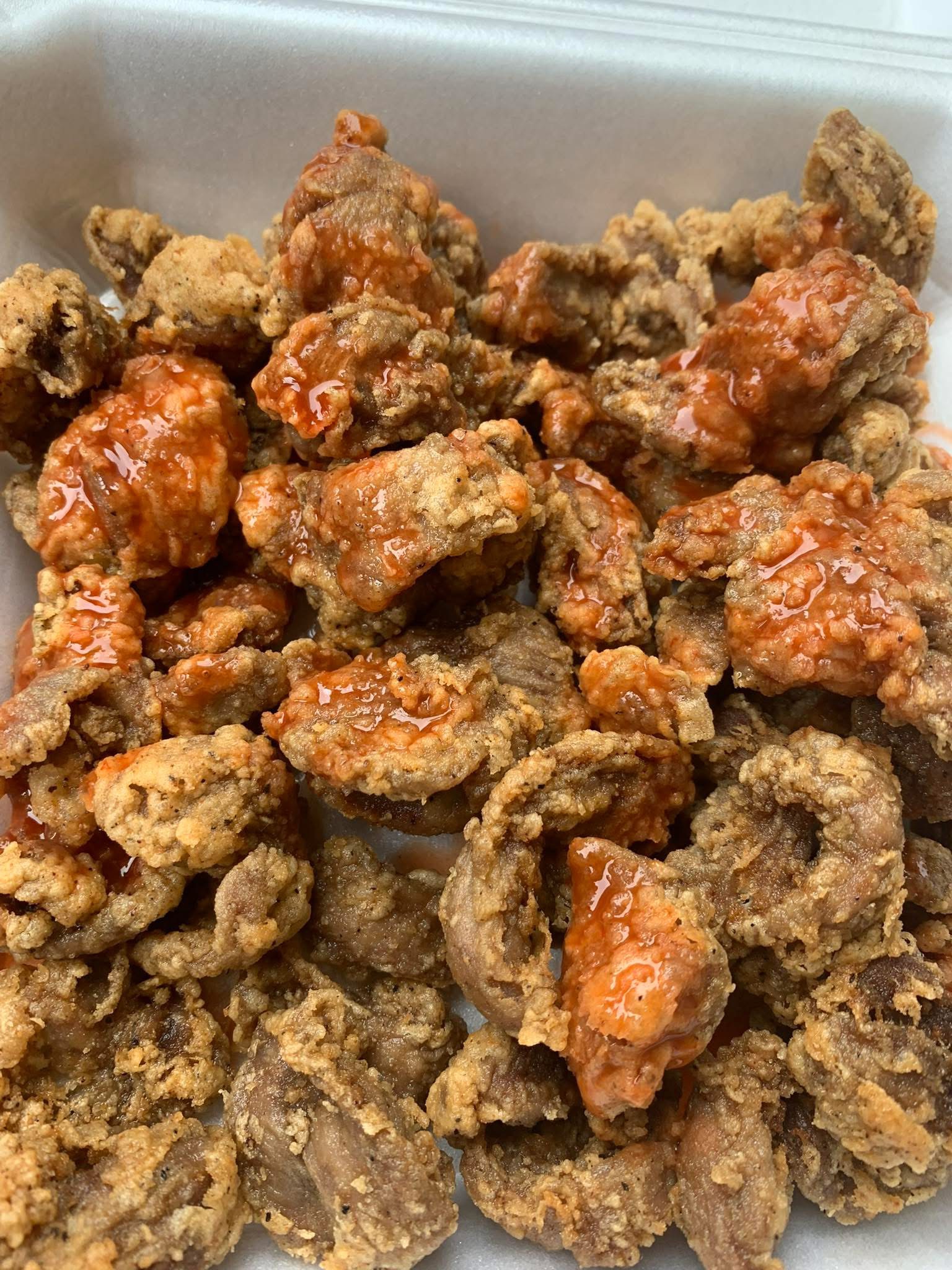 Toss hot gizzards in melted butter mixed with hot sauce for a wing-style flavor.