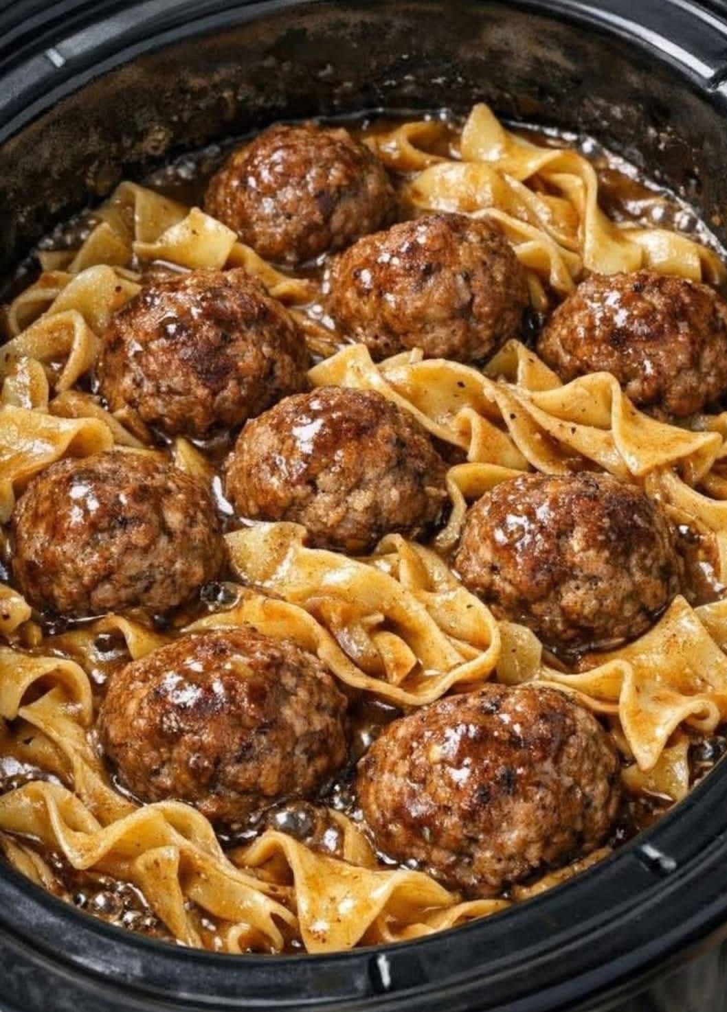 Slow Cooker Beef Meatballs and Egg Noodles is a rich, comforting dish made with tender homemade meatballs simmered in a flavorful brown gravy and served over soft egg noodles. It’s the perfect “set it and forget it” meal for busy days, delivering a hearty and satisfying dinner with minimal effort.