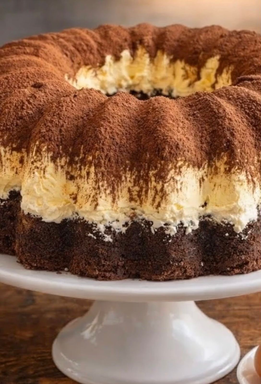 This elegant dessert is a moist chocolate bundt cake filled with a rich, creamy layer and finished with a dusting of cocoa powder. Inspired by tiramisu-style flavors, it blends deep chocolate with light creaminess—perfect for gatherings or a luxurious homemade treat.